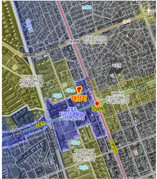 대상지는 노후 근린생활시설 부지로 지하철 2호선ㆍ신분당선 강남역에 인접한 초역세권으로 주변에 GT타워이스트, 파고다타워, BLOCK77빌딩 등 각종 업무ㆍ상업시설이 밀집해 있는 곳이다.