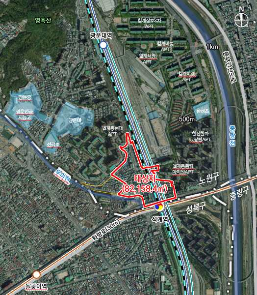 대상지는 노원구 화랑로 337(월계동) 일원 석계역 일대다. 시는 역세권 중심기능과 연결기능 강화를 목표로 8만2158㎡ 규모의 지구단위계획구역을 신설 계획을 수립했다.