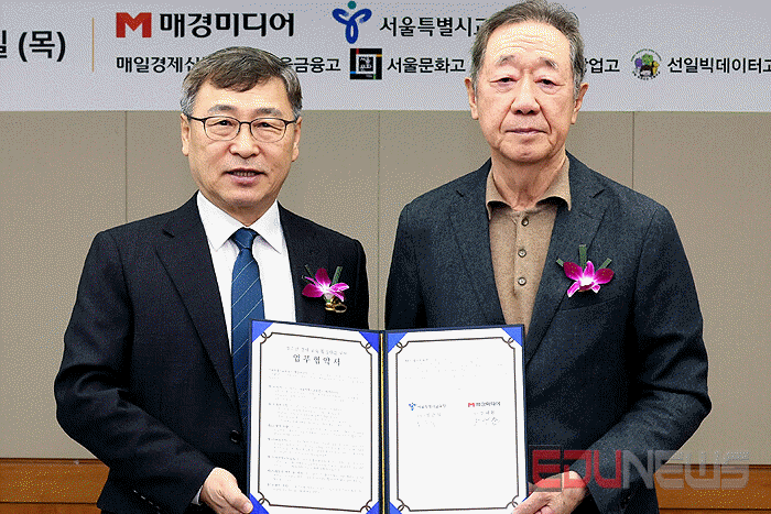 [에듀뉴스] 서울특별시교육청(교육감 정근식)과 매경미디어그룹(회장 장대환)은 19일, 매경미디어그룹 본사에서 특성화고 청소년 금융·경제교육 지원을 위한 업무협약(MOU)을 체결했다.