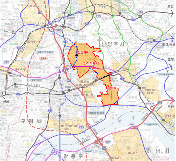 다산신도시는 남양주시 다산동 일원 약 475만 ㎡ 부지에 조성됐으며 진건지구와 지금지구로 구성됐다. 사업 초기 열악한 환경 속에서도 다른 택지지구보다 빠르게 15년 만에 준공을 마쳤으며, 현재 인구 약 10만 명이 거주하고 있다.