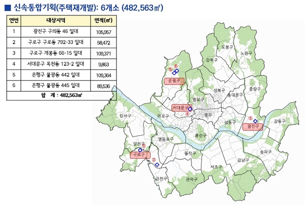 신규 지정 대상은 ▲광진구 구의동 46 일대(10만5957㎡) ▲구로구 구로동 792-33 일대(5만8472㎡)ㆍ개봉동 66-15 일대(10만9371㎡) ▲ 서대문구 옥천동 123-2 일대(9863㎡) ▲은평구 불광동 442 일대(10만9364㎡)ㆍ불광동 445 일대(8만95362㎡) 등 6곳이다.