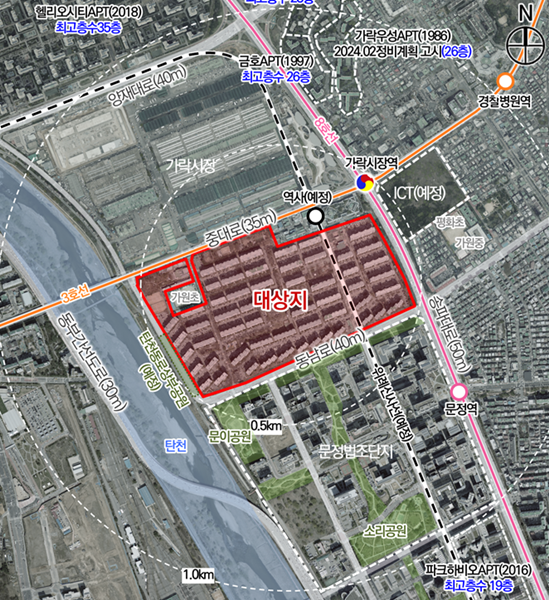 가락시장역 부근에는 사회복지시설과 공공체육시설, 공공지원시설 등 다양한 공공시설을 배치하고, 현재 중대로에 있는 문정2동주민센터는 주민 이용 편의를 고려해 이전할 예정이다.