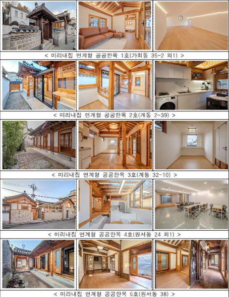 이번에 공급된 한옥들은 중심업무지구와 인접한 종로ㆍ성북에 위치해, 원룸형부터 방 4개에 가족실 등을 갖춘 대형 한옥에 이르기까지 위치ㆍ규모ㆍ구조 등을 달리해 입주희망자의 생활 양식, 취향에 따라 다양한 선택이 가능토록 했다.