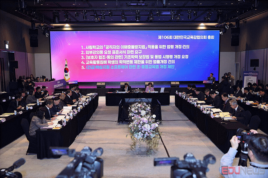 [에듀뉴스] 대한민국교육감협의회(교육감협, 회장 강은희 대구광역시교육감)는 29일, 경기도 성남시 더블트리바이힐튼서울판교호텔에서 제106회 총회를 개최하고 최근 이재명 대통령의 행정통합 정책과 관...