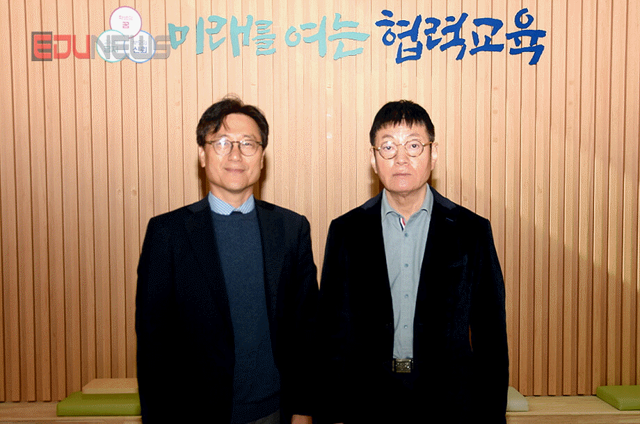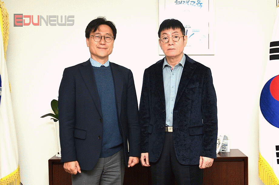 [에듀뉴스] 지난 30일 만난 김태식 서울북부교육장이 인터뷰를 마치고 본지 박기원 회장과 기념촬영을 하면서 북부교육지원청 파이팅을 외치고 있다. ⓒ 에듀뉴스 (https://www.edunewson.com/) ...