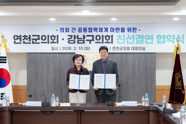 [아유경제=조현우 기자] 강남구의회(의장 이호귀)는 이달 10일 연천군의회(의장 김미경)를 방문해 지방의회간 우호 증진 및 공동발전을 위한 친선교류 강화를 논의했다.