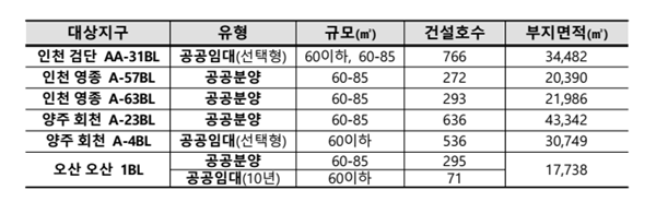 이번 공모는 ▲인천검단(766가구) ▲인천영종(565가구) ▲양주회천(1172가구) ▲오산오산(366가구) 지구 등 수도권 약 3000가구의 공공주택을 대상으로 진행된다.
