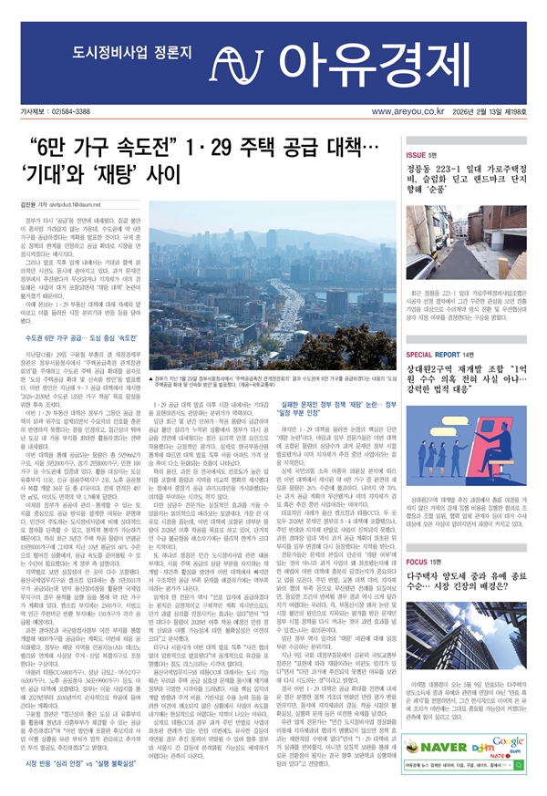 [아유경제_오프라인] 지면으로 만나는 아유경제 신문 헤드라인 - 2026년 2월 13일