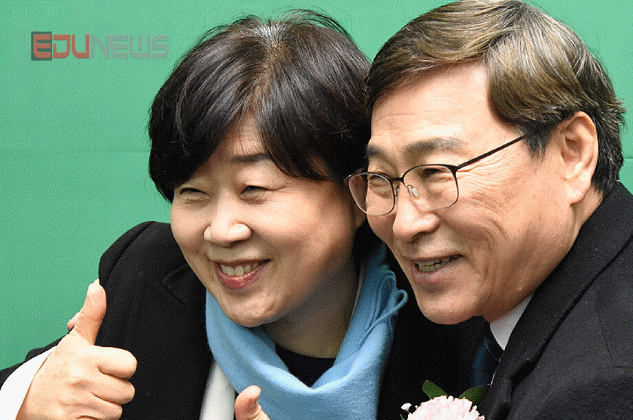 [에듀뉴스] 정근식 서울특별시교육감이 7일 오후 2시 서울교육대학교 대학본부 종합문화관 1층에서 자신의 저서 ‘정근식, 교육감의 길’ 출판기념회에 앞서 서영교 의원과 파이팅 및 기념촬영을 하고 있다.